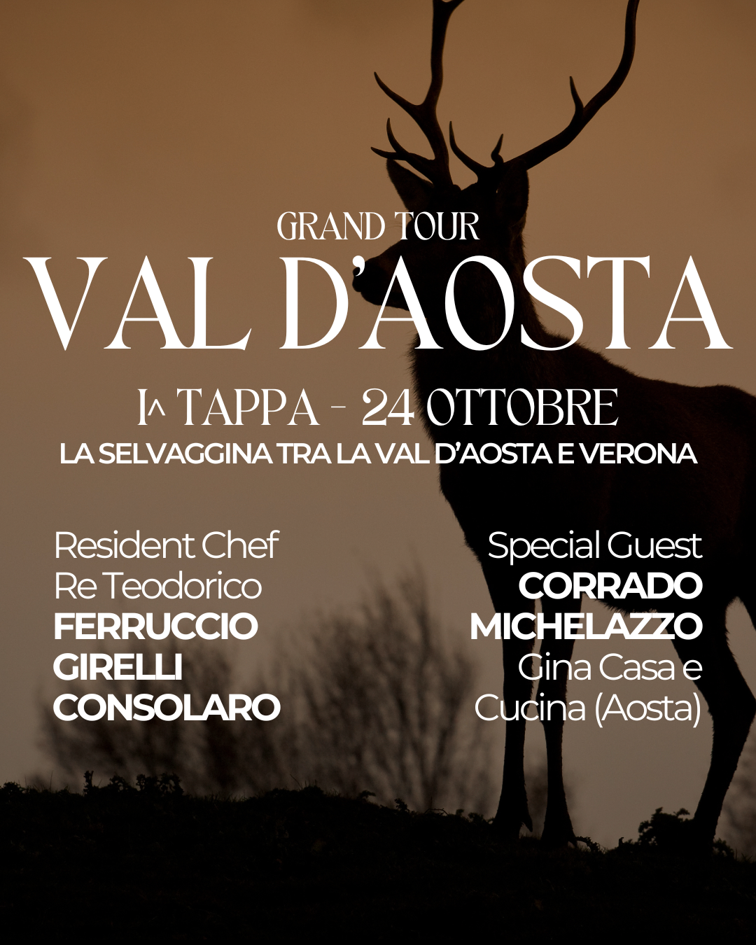 GRAND TOURI^ TAPPA: VAL D’AOSTA 24 OTTOBRE: La selvaggina tra la Val d’Aosta e Verona.Special Guest: Corrado Michellazzo (Gina, Casa con Cucina) Inizia ufficialmente il nostro viaggio alla scoperta del Territorio e dei sapori che ha da offrirci. Partiamo dal Nord Italia, ai confini con la Francia: la Val d’Aosta. Ad affiancare il nostro Resident […]