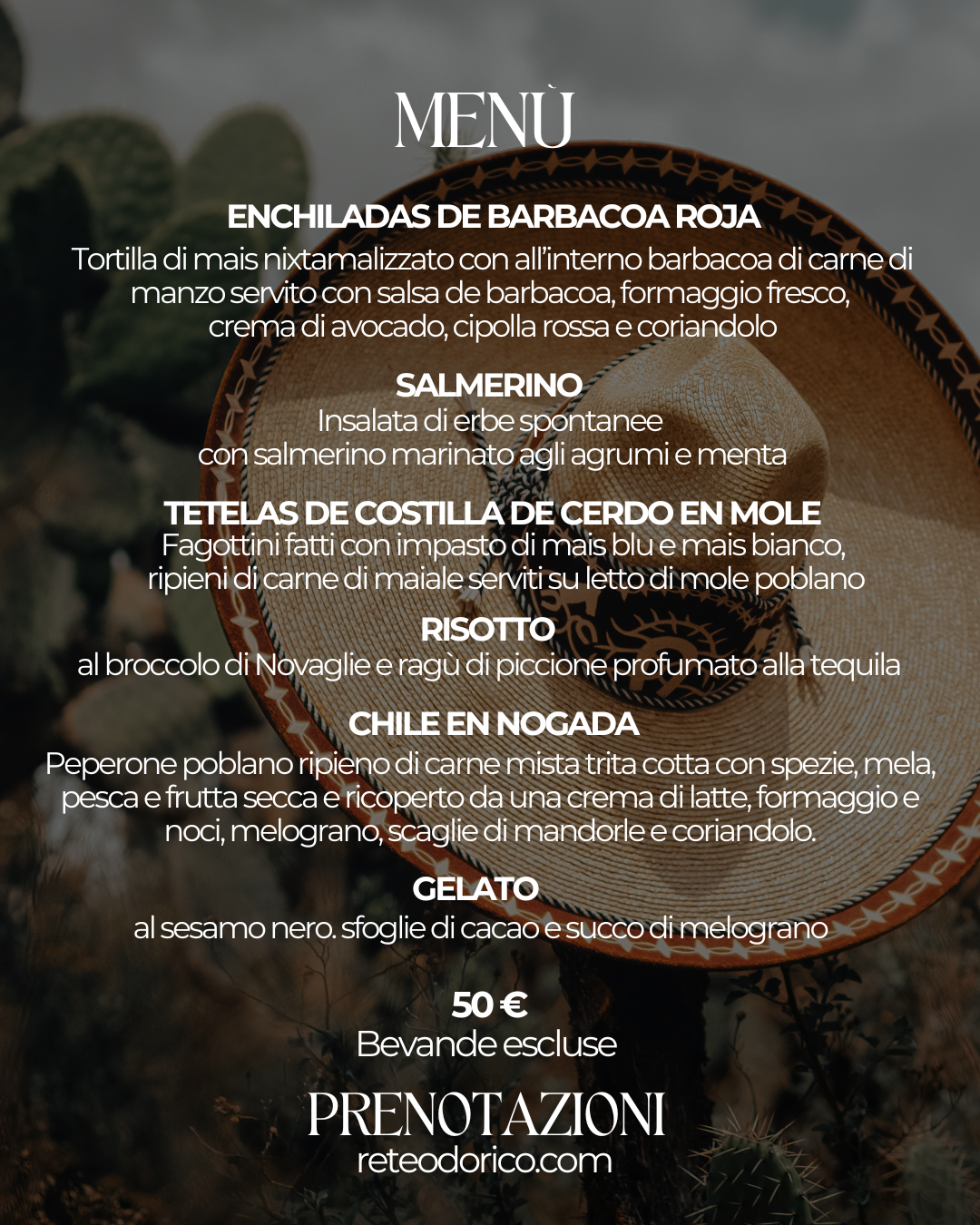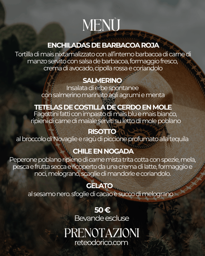 Per questo il menù che Magaly e il nostro resident Chef Ferruccio Girelli Consolaro hanno ideato saprà incuriosirvi e deliziarvi, dandovi un assaggio di Messico, con la consueta sensazione di essere a casa.