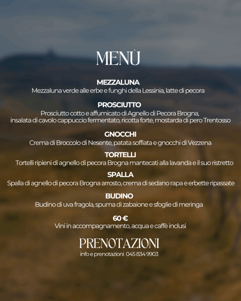 Il nostro accompagnatore e chef d’eccezione sarà Giovanni Caltagirone, da sempre amante e cultore della Lessinia. Porterà nella cucina del Re Teodorico tutta la sua esperienza e l’amore per la Pecora Brogna, razza ovina autoctona delle montagne veronesi.